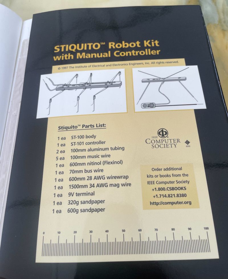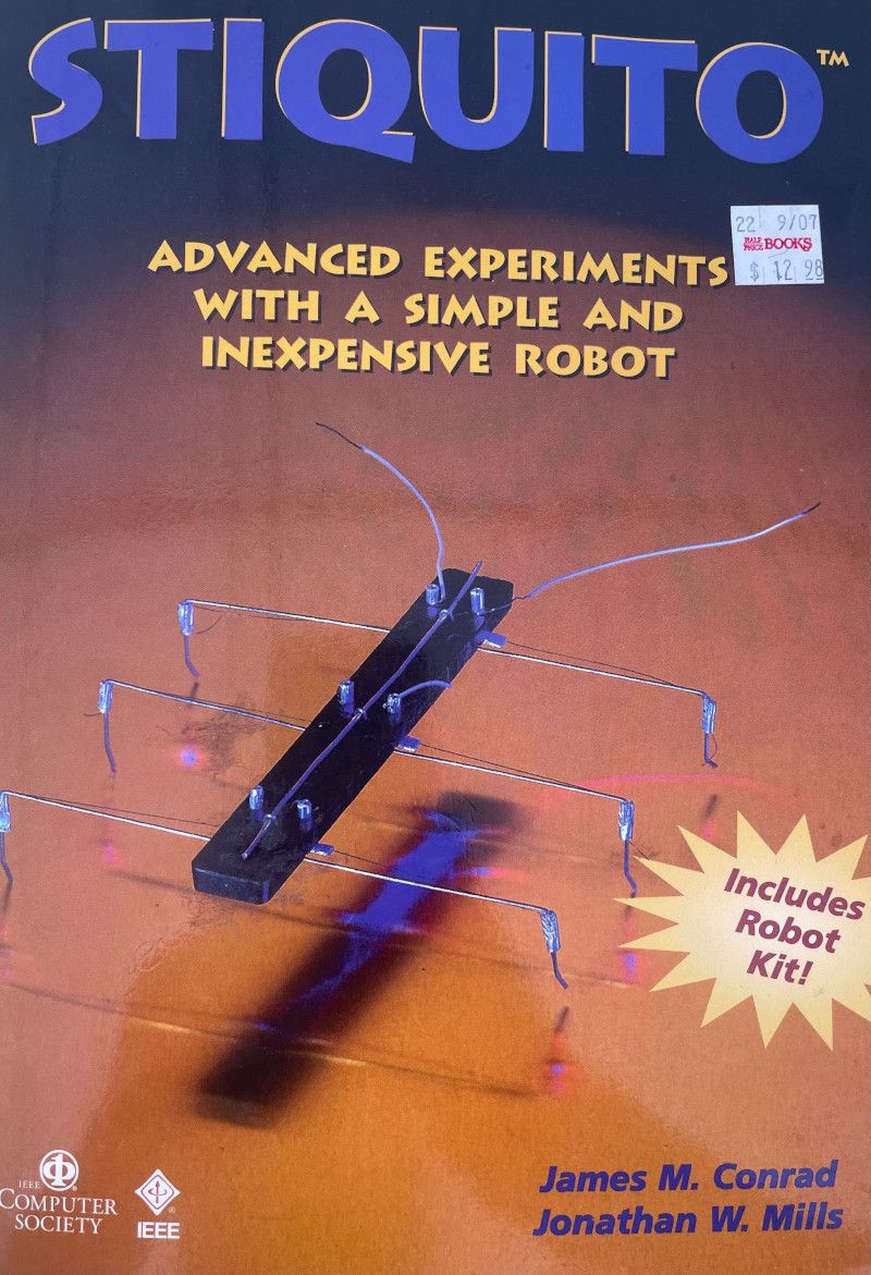 He mentioned in class that he wrote a robotics textbook for high schools. This stuck in my mind, but you couldn't yet purchase anything immediately online, and I was too shy a student to ask how to get a copy. However, several years later I was working at a Half Price Books store when I stumbled across a copy, complete with the unopened robot kit! I promptly bought it, then of course, forgot about it for 2 decades 😀